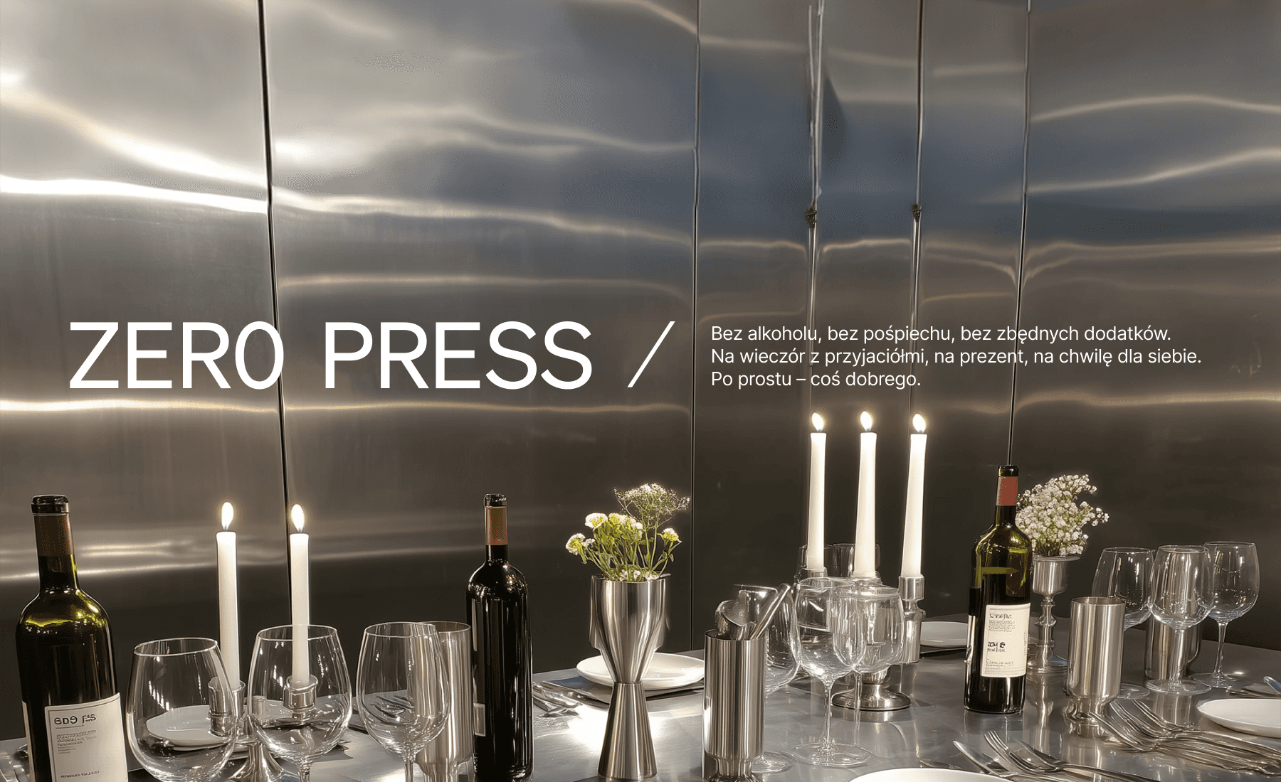 Visual identity and e-commerce design for a store offering premium non-alcoholic drinks. The logo reinterprets the percent symbol — shifting its meaning from alcohol content to conscious choice. Choosing zero isn’t about missing out, but about defining your own balance.